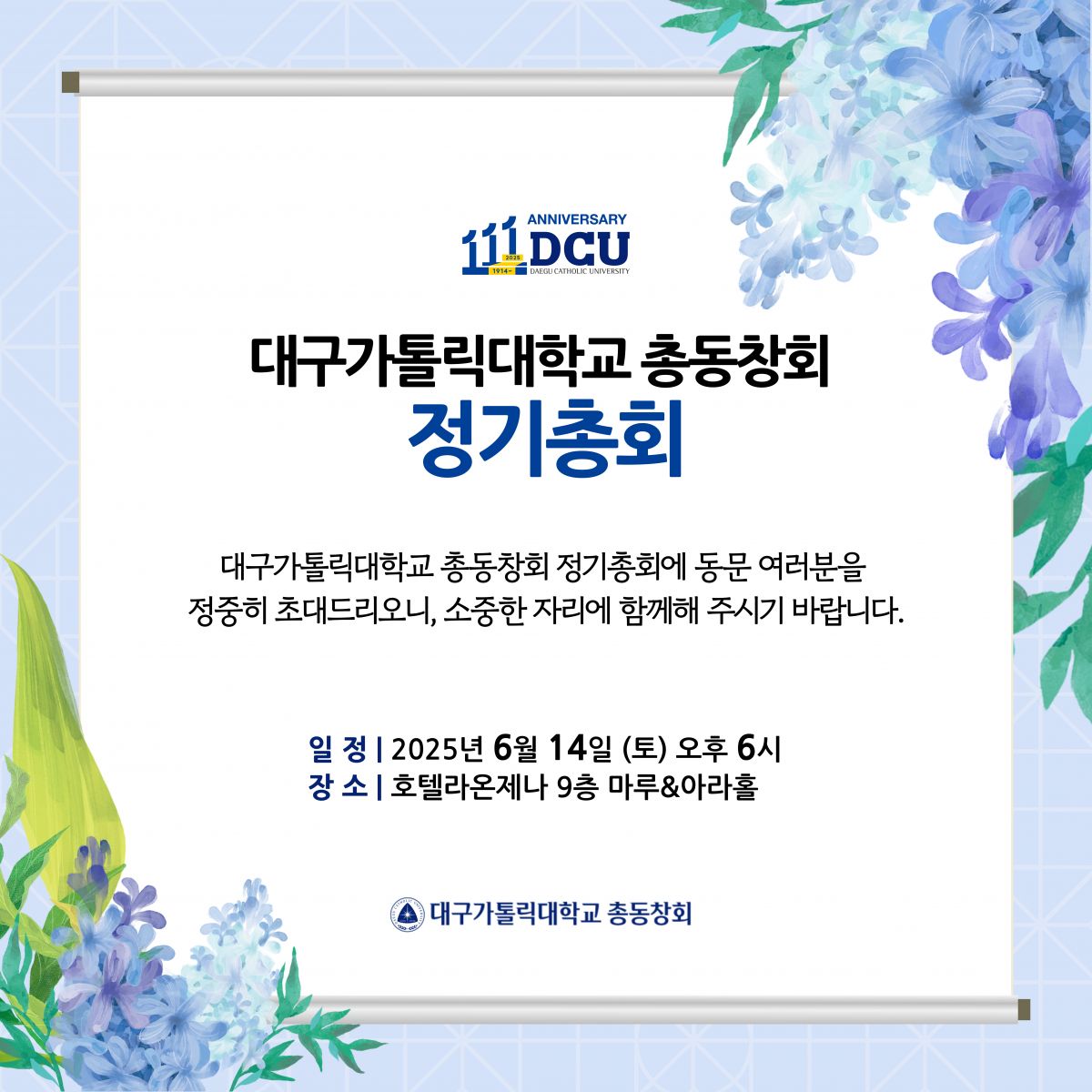 2025년 대구가톨릭대학교 총동창회 정기총회를 아래와 같이 개최합니다.